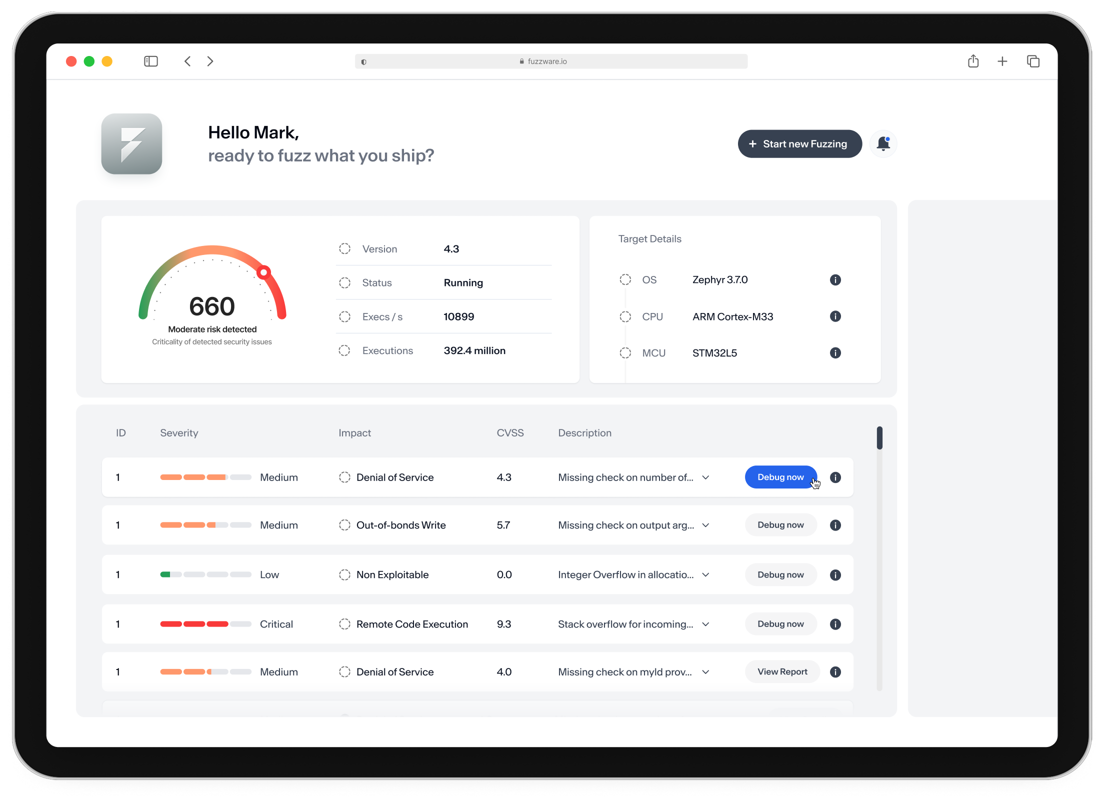 Fuzzware supports security teams from deep firmware analysis to compliance-ready results by combining automated fuzzing, expert research, and structured documentation.